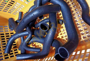 橡膠生產(chǎn)過程中發(fā)生的質(zhì)量問題和解決方法 1、特種橡膠產(chǎn)品變形 造成原因: ①多次用洗模寶洗滌模具使模腔表面粗糙,引起粘模,模具刀口鈍、起模時造成產(chǎn)品變形,撕邊困難。 ②產(chǎn)品起模方法不對,一般員工用氣槍吹產(chǎn)品的旁邊,用另一只手扯產(chǎn)品的廢邊,產(chǎn)品如果沒有被吹開,用手一扯,產(chǎn)品就會變形。 解決方法: ①模具洗滌多次發(fā)生粘?,F(xiàn)象后,必須把模具交給模具管理人員拿到模具車間,用金相砂紙或油石對模具型腔進行打光出來,降低模具表面粗糙度。 ②模具打開后,用氣槍嘴對準(zhǔn)產(chǎn)品的中心進行吹,使產(chǎn)品從模腔中離開,達到產(chǎn)品自動脫模的目的。 2、產(chǎn)品毛刺 造成原因: ①模具導(dǎo)柱導(dǎo)套松動使上下模錯位引起產(chǎn)品同心度不好,產(chǎn)生產(chǎn)品單邊引起產(chǎn)品內(nèi)徑毛刺,外徑廢邊難撕。 ②模具刀口半邊快半邊鈍,使產(chǎn)品半邊光滑半邊毛糙。 ③模板長時間使用硫化壓力不匹配造成變形,又經(jīng)常性貼紙使模板扭曲造成一模產(chǎn)品中有好有毛刺。 解決方法: ①經(jīng)常性對模具的導(dǎo)柱導(dǎo)套進行整修,上下模板之間墊上鋼鋸條,用錘子對準(zhǔn)上模上的導(dǎo)柱進行敲打,把導(dǎo)柱和導(dǎo)套震緊即可。判斷導(dǎo)柱導(dǎo)套松動的方法:模具合模后用手壓著兩邊晃動幾下,若導(dǎo)柱導(dǎo)套定位準(zhǔn)確就晃不動,若不準(zhǔn)確就會出現(xiàn)晃動的現(xiàn)象。 ②更換導(dǎo)柱導(dǎo)套,請模具管理員把導(dǎo)柱導(dǎo)套和模具敲下,用與模腔一樣粗細的圓柱鐵5個,把上下模板鎖住,然后用鉸刀把導(dǎo)柱孔重新鉸過,換上新的導(dǎo)柱導(dǎo)套即可。 ③若模板變形太大,及時更換新模板。 3、產(chǎn)品表面雜質(zhì) 造成原因: ①橡膠混煉不均勻,尤其是炭黑混煉不均勻形成油包炭黑,引起雜質(zhì)。 ②回料中的雜質(zhì),主要表現(xiàn)在回料中混有廢邊、骨架、膠料落地粘到的雜質(zhì)。 ③混煉膠運輸過程中沾到其他物質(zhì),經(jīng)過開煉機使雜物碾碎,造成雜質(zhì)。 解決方法: ①橡膠混煉時,炭黑與橡膠的軟化劑不要同時放入密煉機中混煉,炭黑先放入等炭黑混入后再加軟化劑。 ②注意現(xiàn)場衛(wèi)生和管理,自覺做好回料與其他物質(zhì)分開,對放入回料框中的橡膠加強檢查。 ③要求供應(yīng)商對提供的半成品橡膠做好包裝和防護工作。 4、產(chǎn)品唇口缺膠 造成原因: ①橡膠焦燒,造成橡膠在模腔中的流動性變差引起產(chǎn)品缺膠。 ②真空泵堵塞,造成模腔中的空氣無法抽出,引起缺膠。 ③產(chǎn)品結(jié)構(gòu)復(fù)雜,空氣無法從模腔中排出,引起產(chǎn)品缺膠。 ④骨架定位過緊,生產(chǎn)過程中,骨架偏位,引起缺膠。 解決方法: ①調(diào)整配方,減慢硫速。 ②在膠料表面涂灑硬脂酸鋅或提高膠料的塑煉的程度。 ③加開排氣槽,對適當(dāng)產(chǎn)品進行二次排氣,噴灑少量脫模劑。 ④生產(chǎn)過程中骨架定位調(diào)整好,以免過緊或偏位。 5、產(chǎn)品裂爛 ①模溫過高造成裂爛。 ②脫模劑噴灑過多造成裂爛。 ③出模方式不正確造成裂爛。。 解決方法: ①合模線裂爛可提高機器壓力。 ②模具上有模痕,應(yīng)及時清除。 ③模具結(jié)構(gòu)不合理。 推薦橡膠專用脫模劑MK-101X 東莞市美雅化工有限公司20多年專注高端脫模劑研發(fā)和生產(chǎn)、輔料供應(yīng),助您買到環(huán)保好用的脫模劑產(chǎn)品。 全國脫模劑咨詢熱線:0769-22623512 更多脫模劑資訊請瀏覽官網(wǎng):http://www.yatsing.com.cn 櫻井脫模劑(一個集復(fù)合材料、壓鑄、聚氨酯、金屬、橡膠、EVA、PU等行業(yè)領(lǐng)域于一體的綜合性專業(yè)采購脫模劑平臺) |